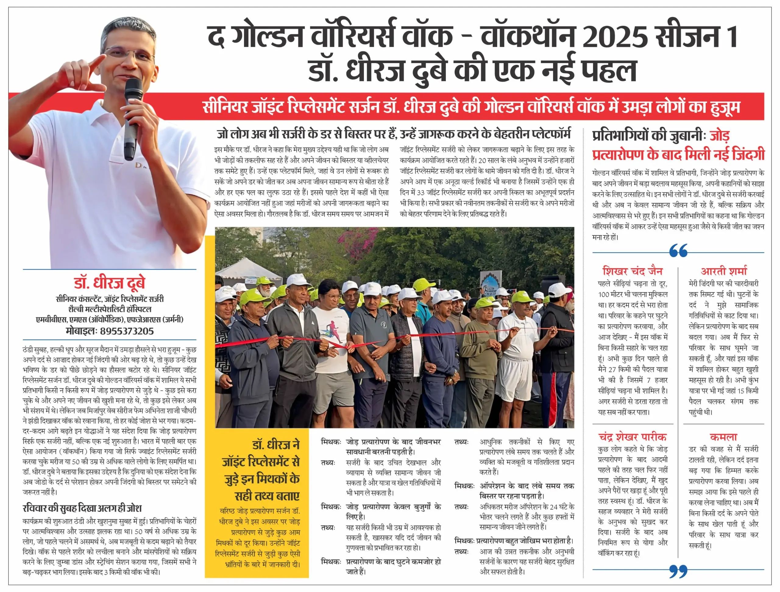 Dr. Dheeraj Dubey’s Golden Warriors Walkathon 2025 marked a significant step toward transforming lives in the field of orthopedics. This landmark event brought together individuals to promote mobility, resilience, and a pain-free future. Together, we are redefining possibilities in joint health and active living!