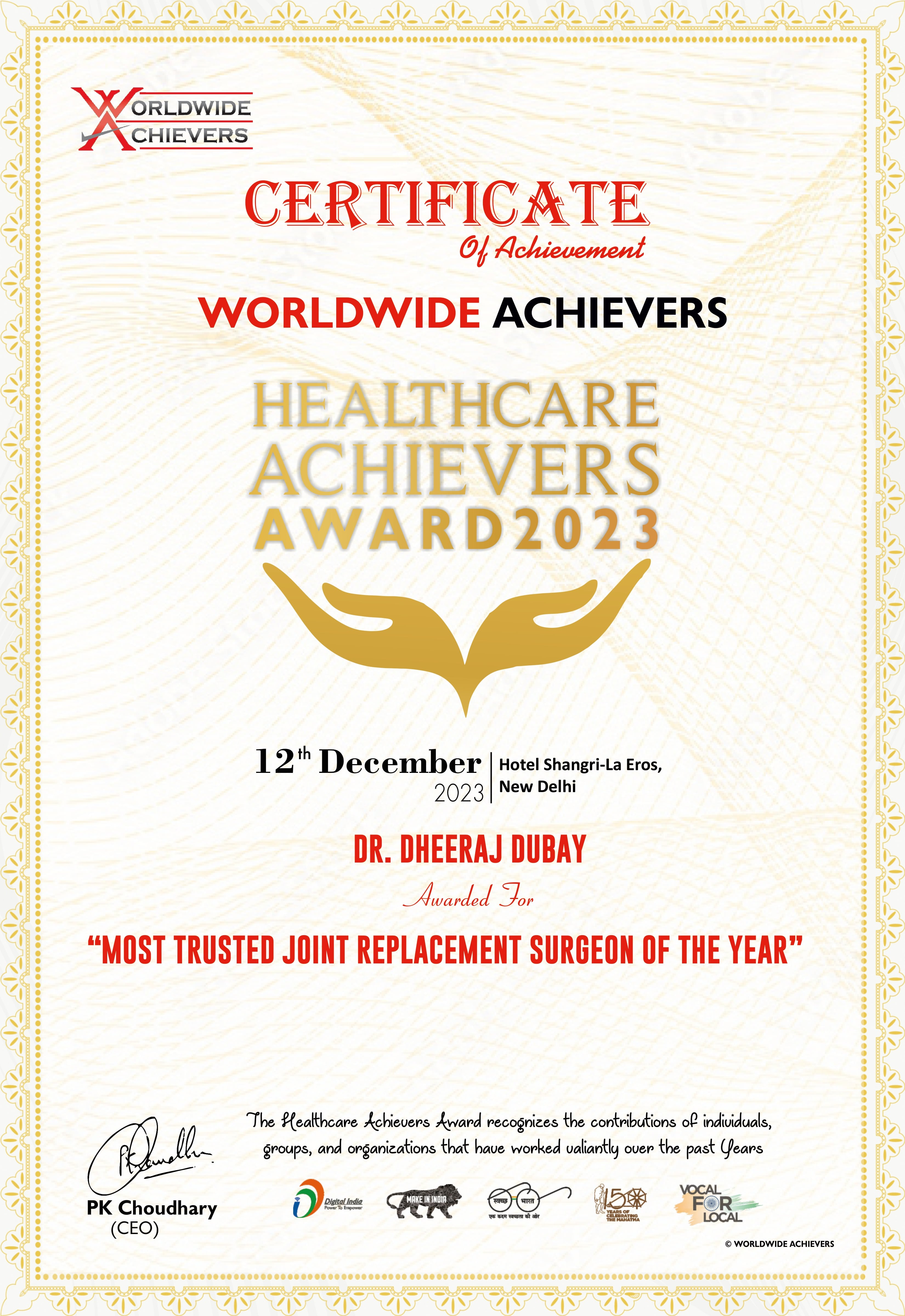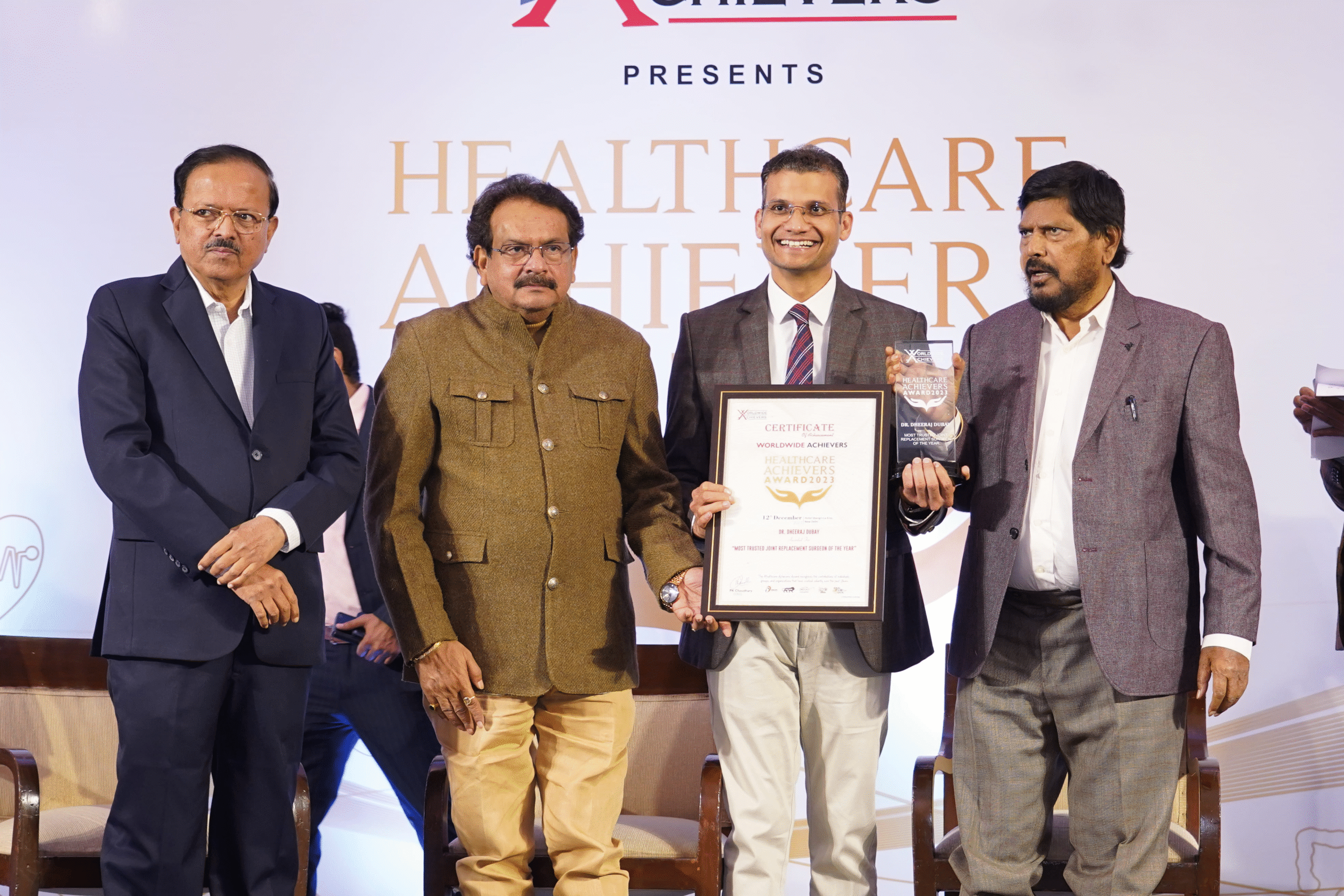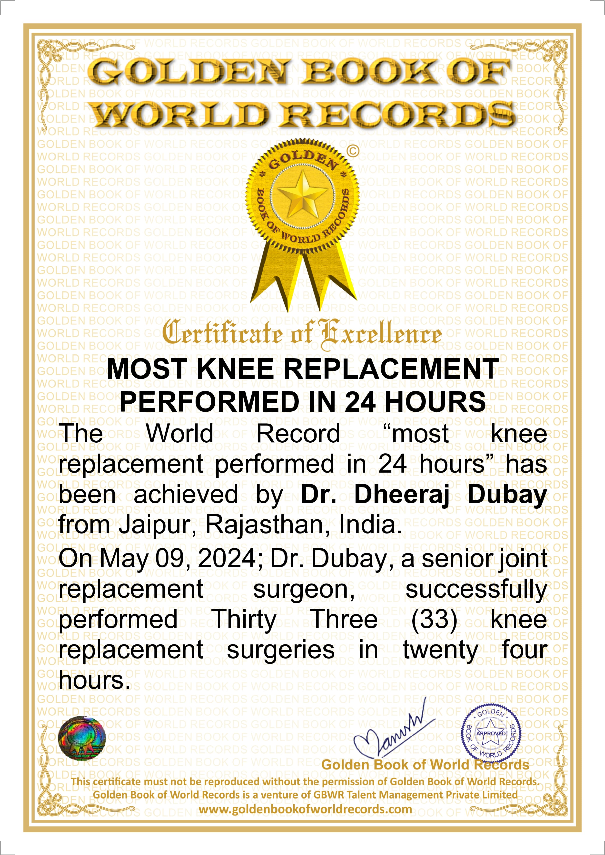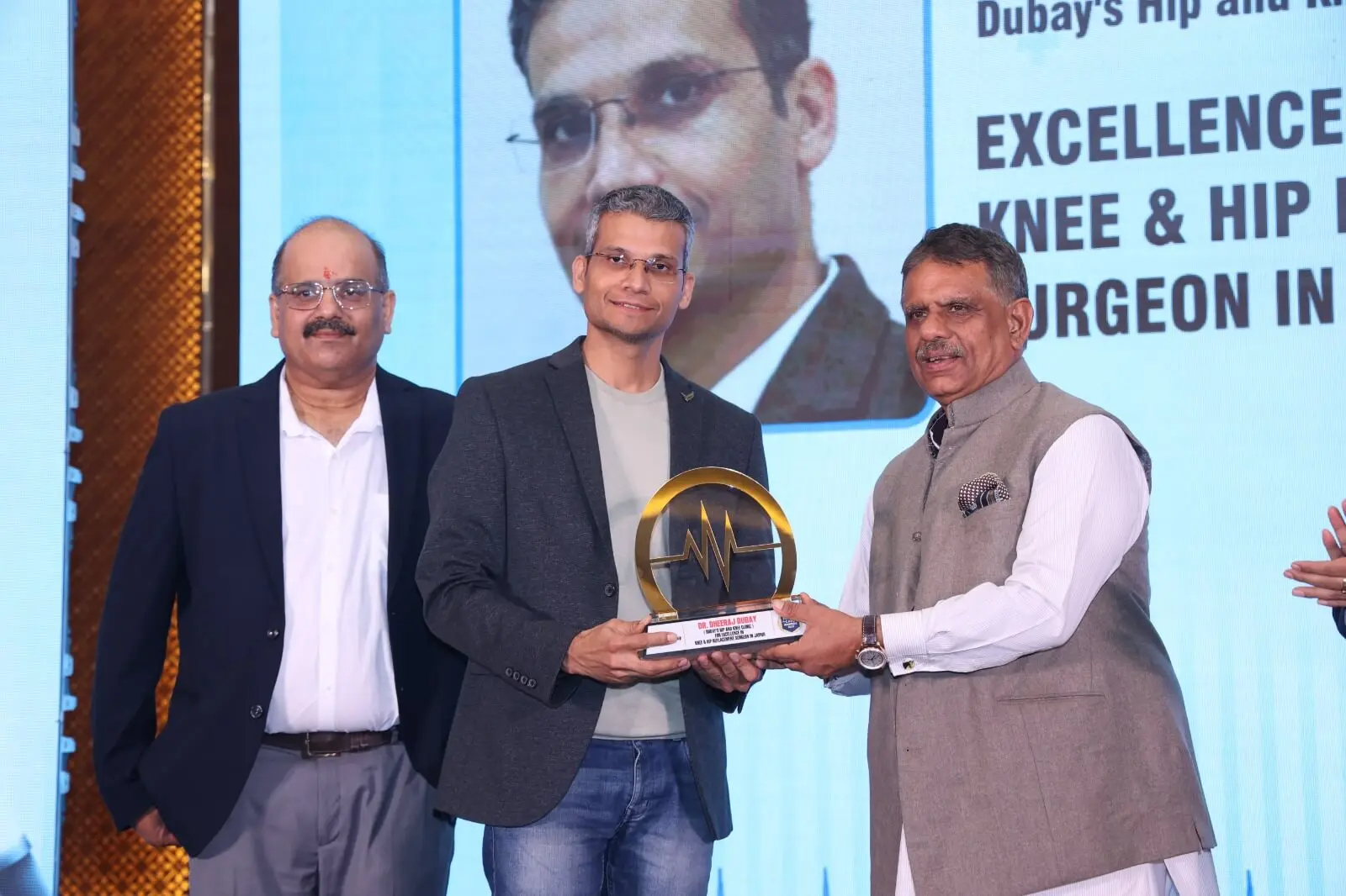 Dr. Dheeraj Dubay is a renowned joint replacement surgeon in North India with over 15 years of experience. His career includes prestigious roles at Sir Gangaram Hospital, New Delhi, and Shalby Hospital, Ahmedabad. Dr. Dubay, who trained in complex and revision joint replacement surgeries at Germanys Aklepios Ortho Center, excels in advanced techniques like computer navigation and minimally invasive surgeries. Currently at Shalby Multi-Specialty Hospital, Jaipur, he has successfully performed over 21,000 joint replacements, setting a record of 21 surgeries in a single day in Rajasthan. Recognized for his contributions, he has received multiple awards from Rajasthan’s Health Minister and was recently honored as North India’s most trusted Joint Replacement Surgeon by the central Health Minister. Dr. Dubay is also dedicated to educating the public about bone and joint health through various social platforms.